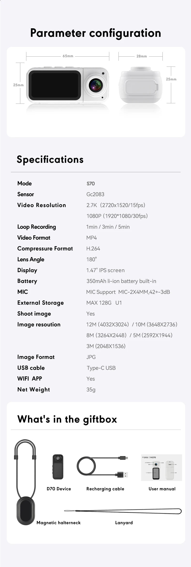 Inform when this item available Mini 2.7K Thumb Action Camera – 1080P Pocket WiFi Sport Cam