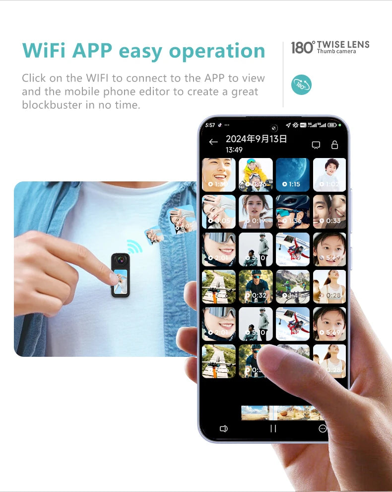 1080P clarity with a 180° wide-angle lens for immersive shots